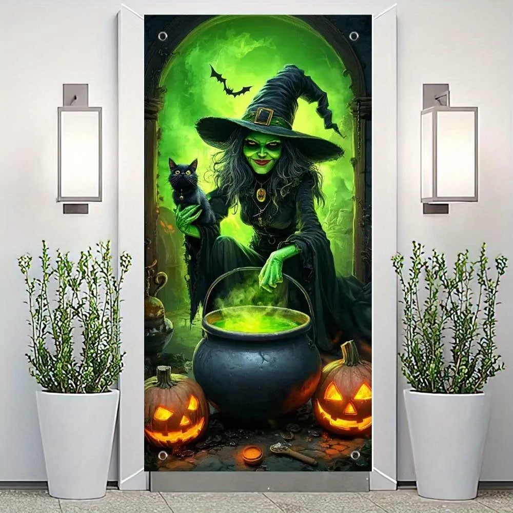 Halloween Party Banner Backdrop Horror Killer Creepy Scary Zombie Nun Terror Ghost Theme Decorations Decor for Front Door
