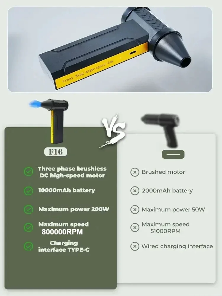 1. High quality components: This mini turbo jet fan adopts super high-quality imported high-speed bearings, a brand new CNC metal turbine, a brushless motor, and a hand wound motor.